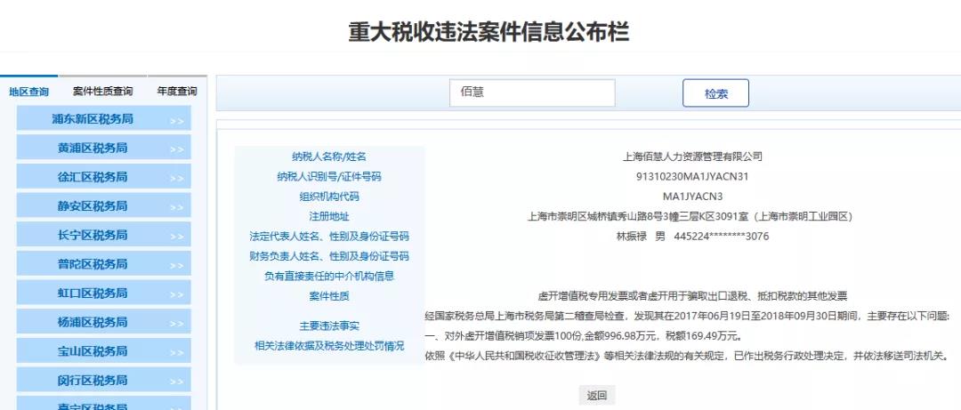 5、上海XX人力資源管理有限公司,經(jīng)國(guó)家稅務(wù)總局上海市稅務(wù)局第二稽查局檢查,發(fā)現(xiàn)其在20170619日至20180930日期間,主要存在以下問(wèn)題:對(duì)外虛開(kāi)增值稅銷項(xiàng)發(fā)票100,金額996.98萬(wàn)元,稅額169.49萬(wàn)元。依照《中華人民共和國(guó)稅收征收管理法》等相關(guān)法律法規(guī)的有關(guān)規(guī)定,已作出稅務(wù)行政處理決定,并依法移送司法機(jī)關(guān)。