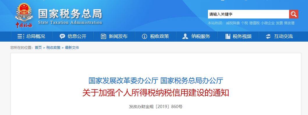 近日,國家稅務(wù)總局發(fā)布《國家發(fā)展改革委辦公廳 國家稅務(wù)總局辦公廳 關(guān)于加強個人所得稅納稅信用建設(shè)的通知》。