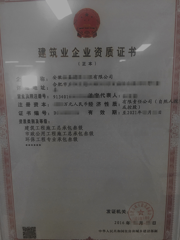 級(jí)別:建筑工程總包三級(jí)+環(huán)保工程三級(jí)+市政三級(jí)